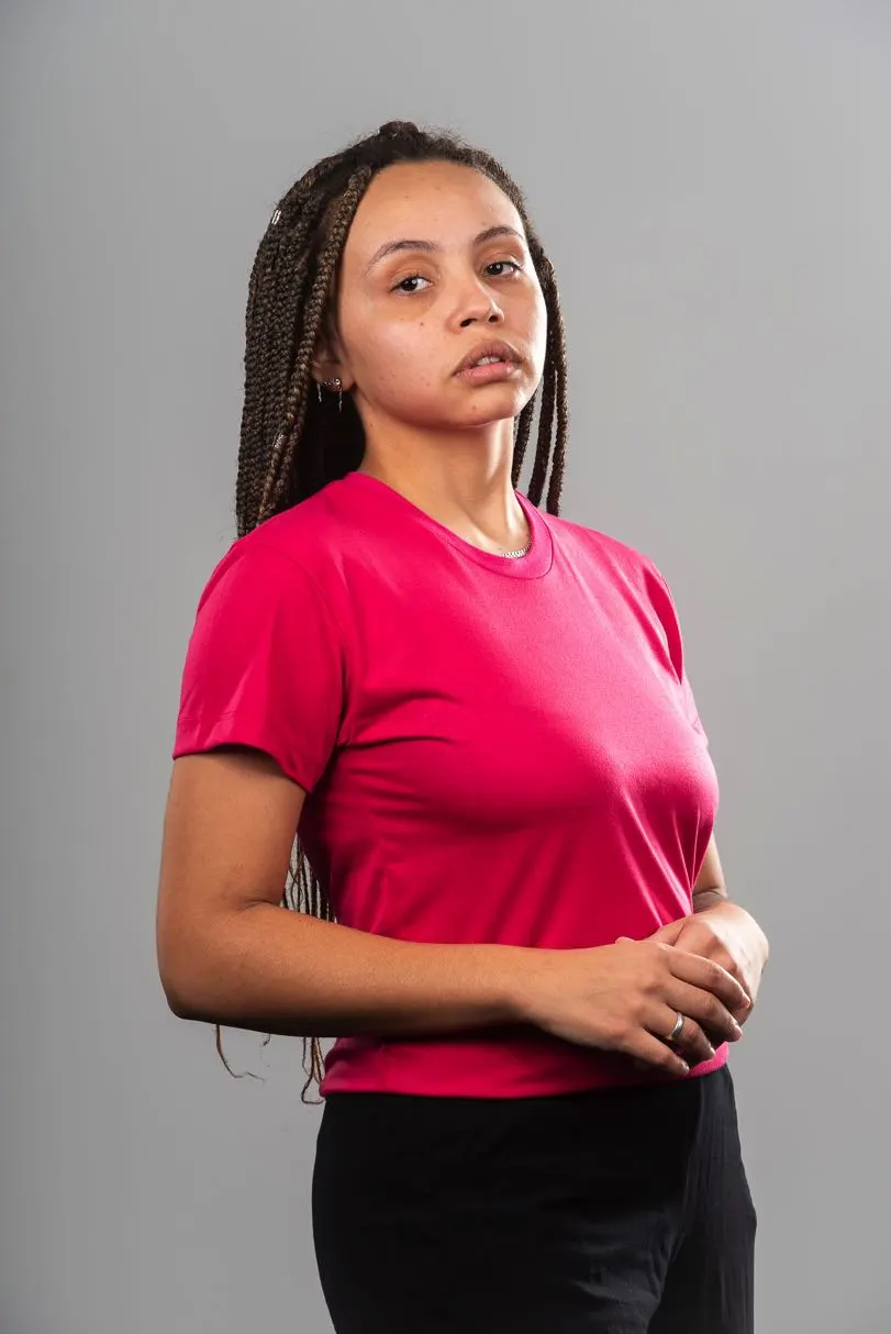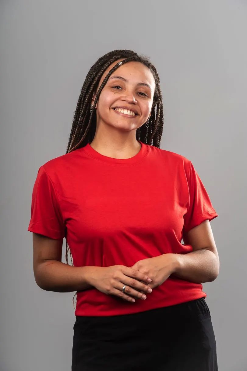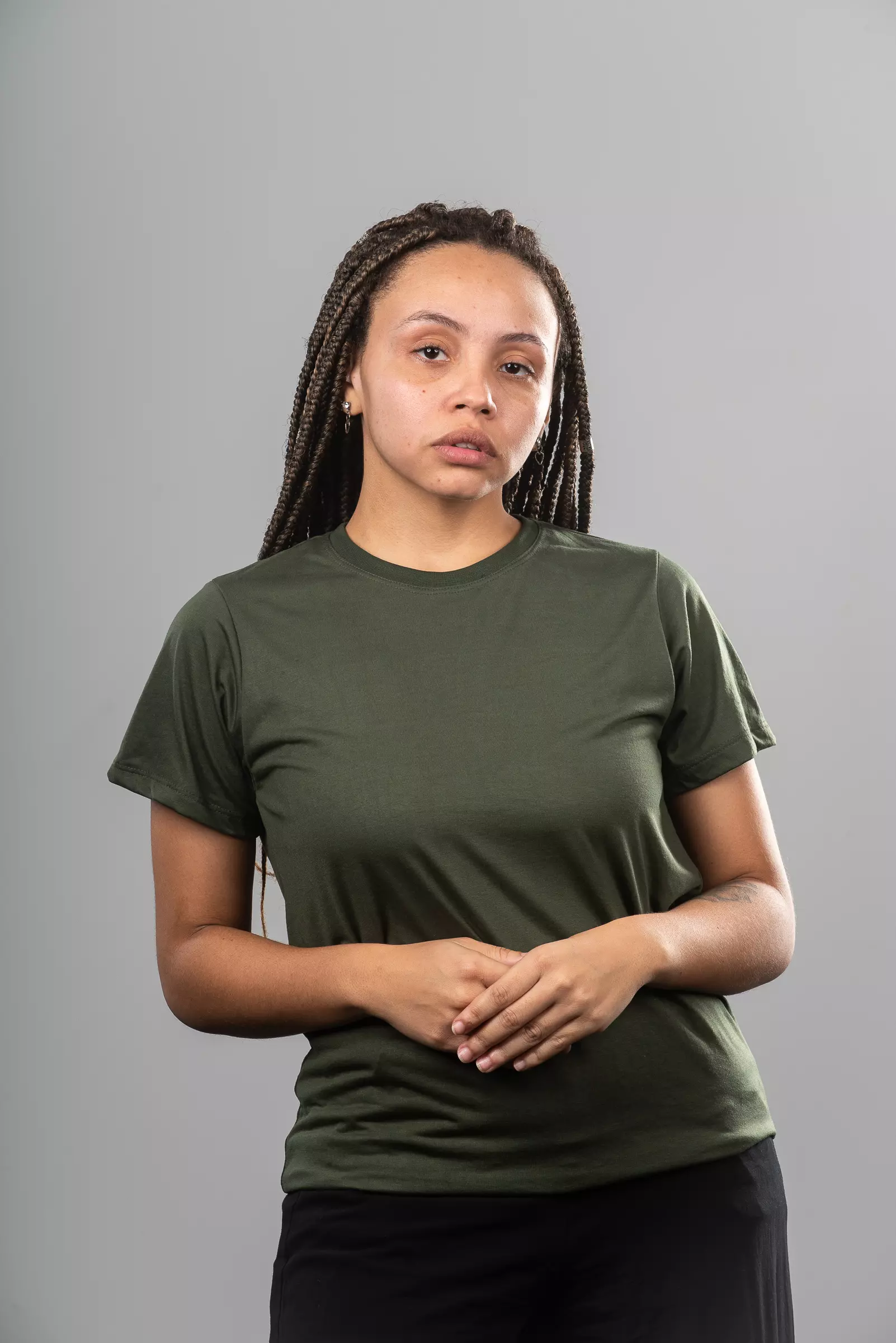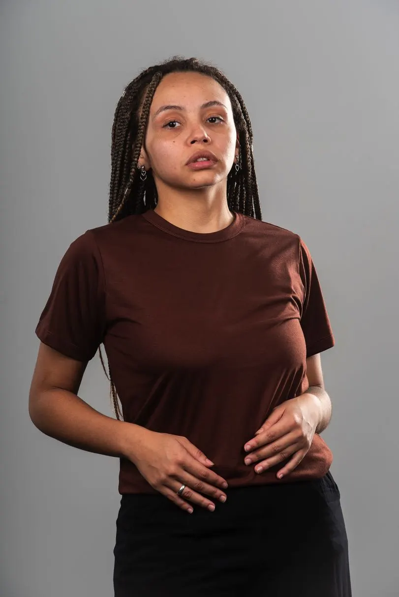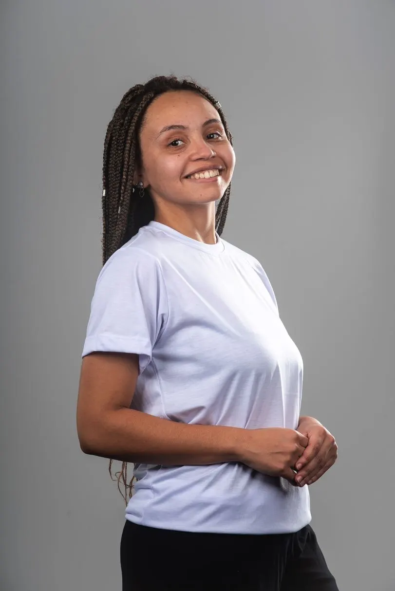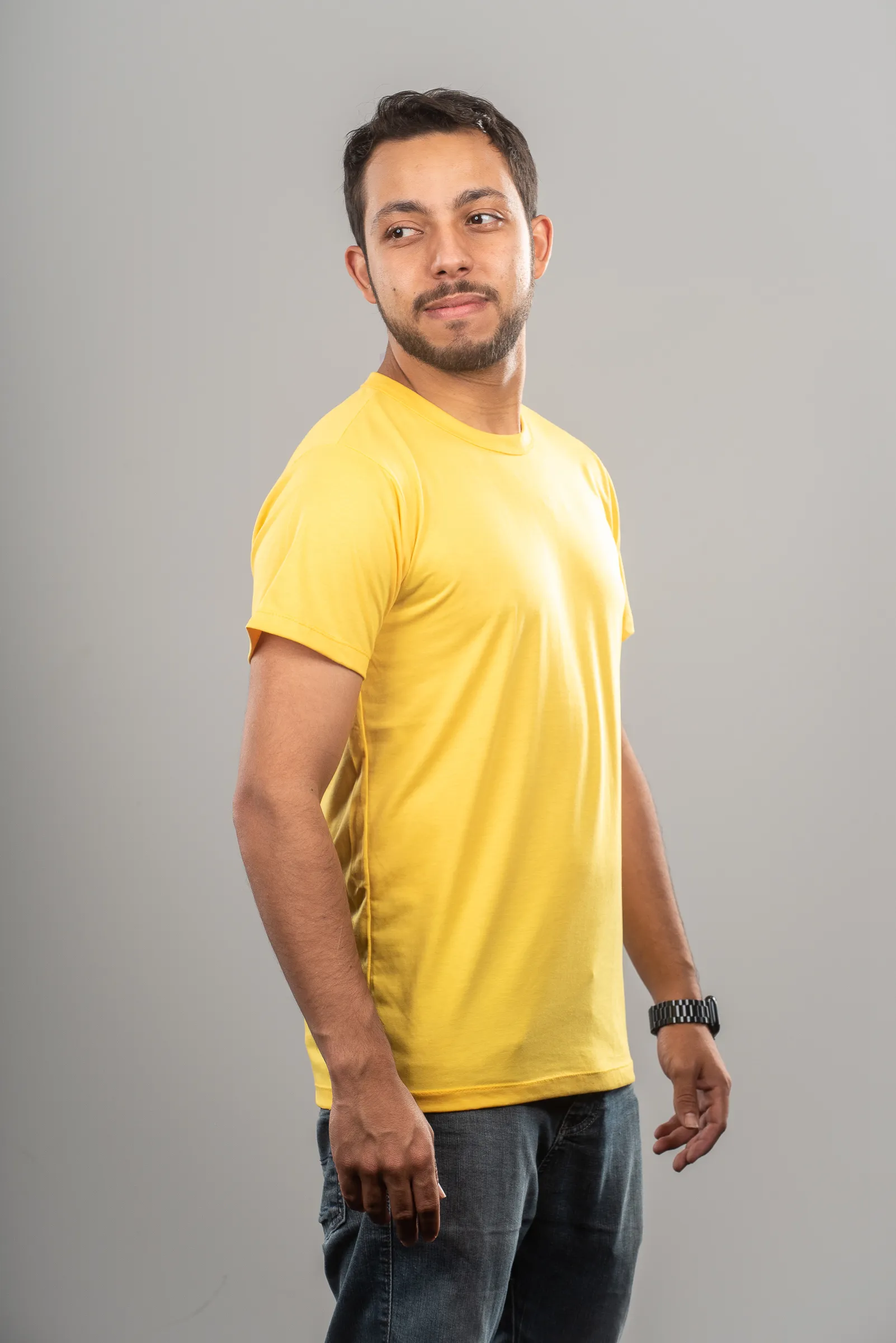 Camiseta básica em malha fria antipilling, manga curta, gola redonda.