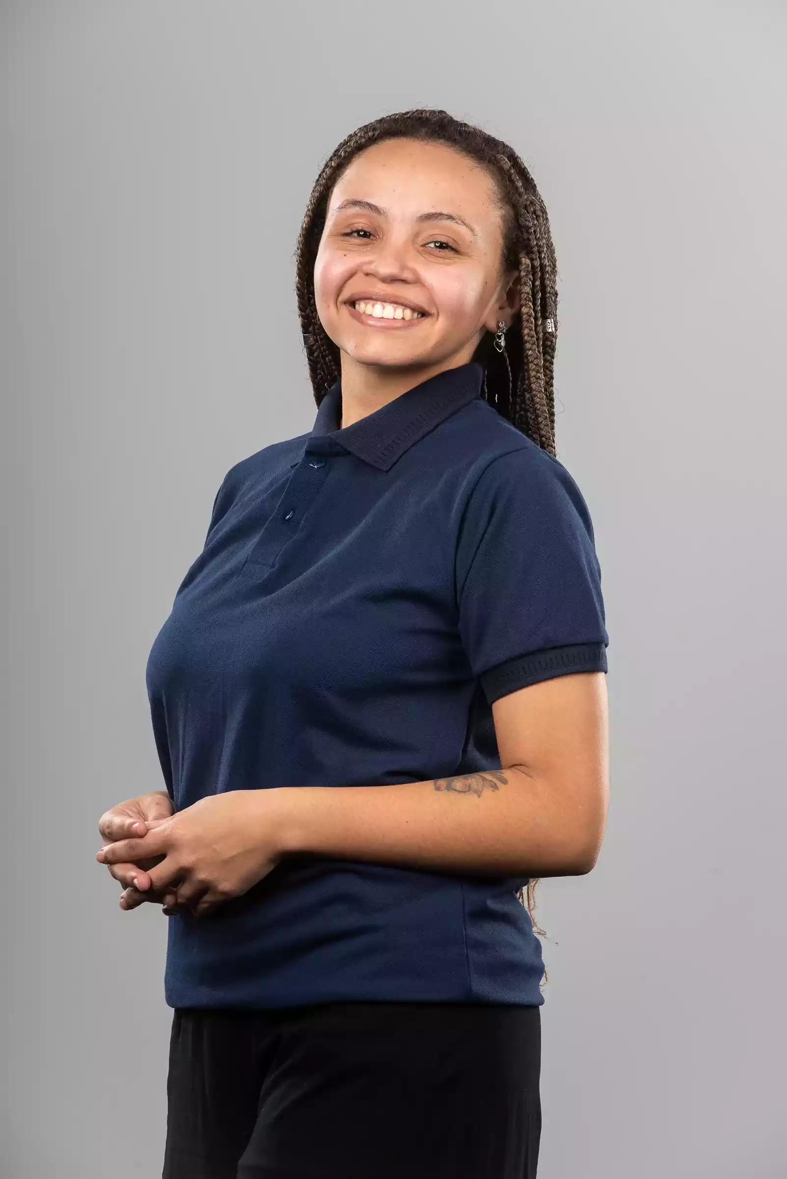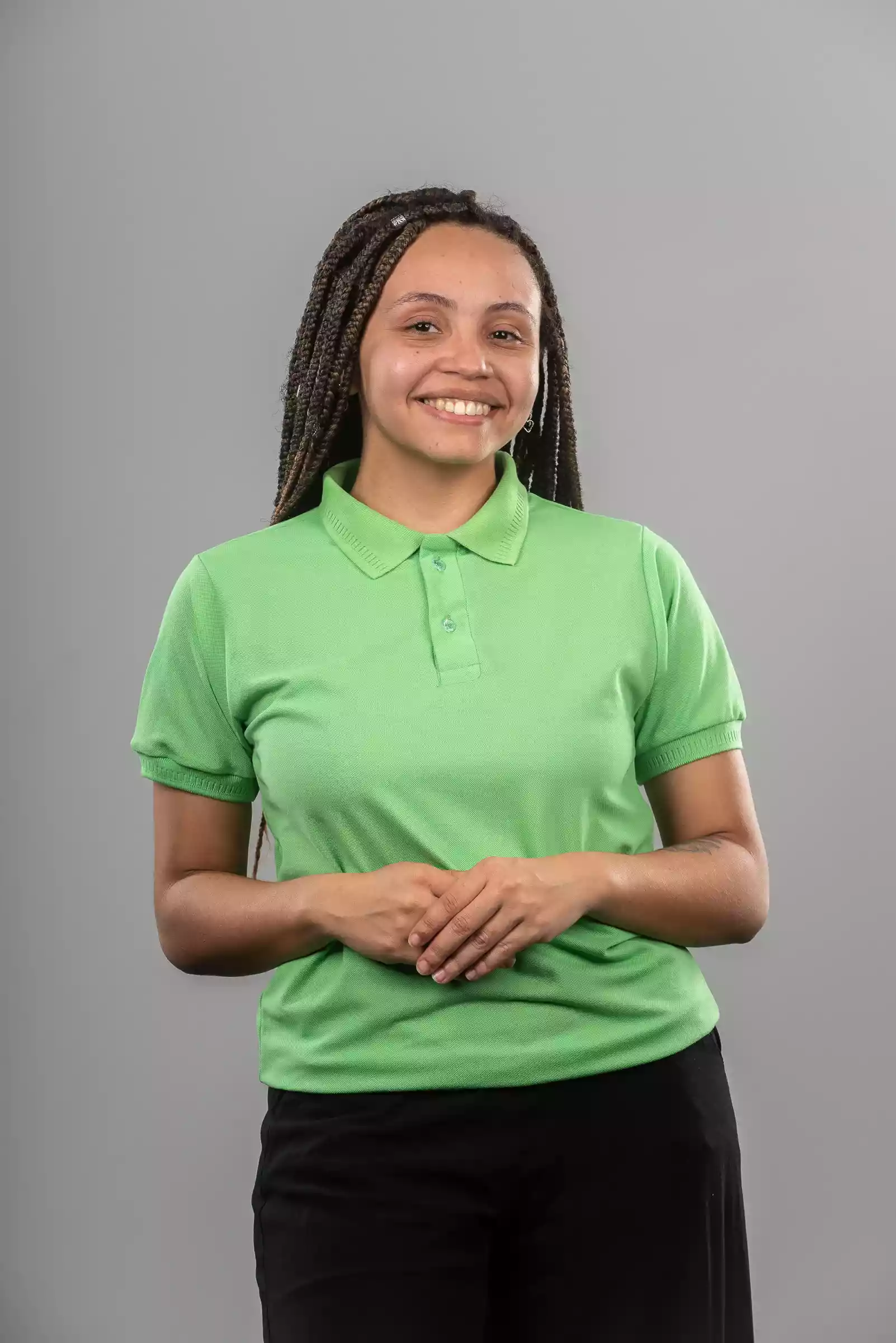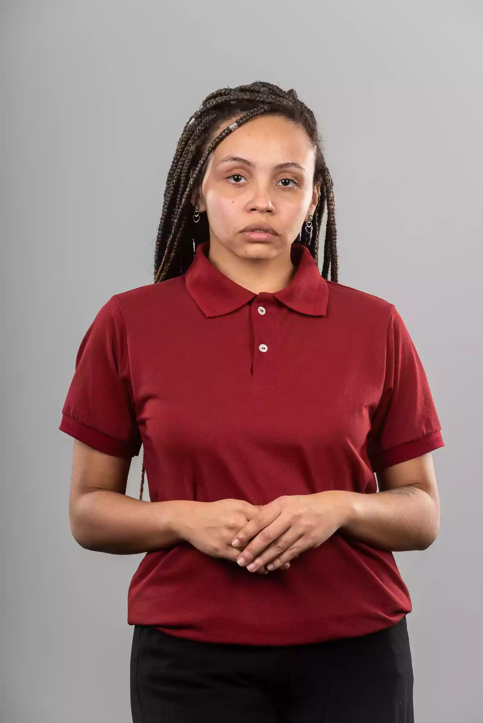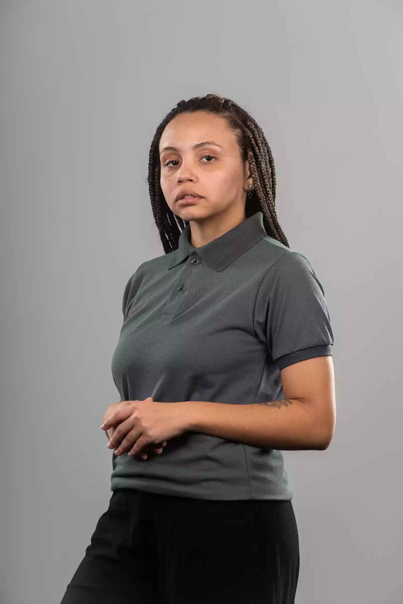 Gola polo basica, malha piquet caiman, manga curta com gola e punho misto.