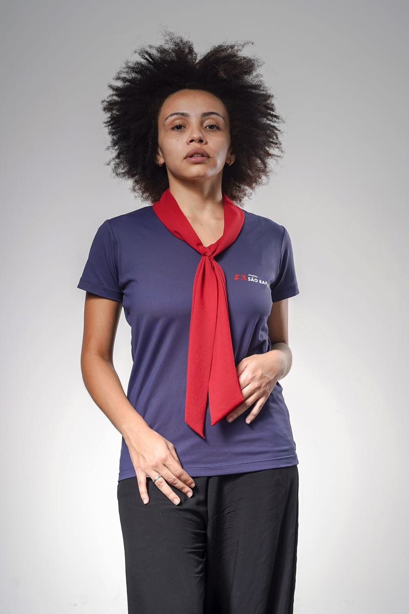 Blusa em malha com lenço. Malha suplex light. Manga curta. Lenço embutido em musseline. Sua logomarca inclusa. Faça seu orçamento.