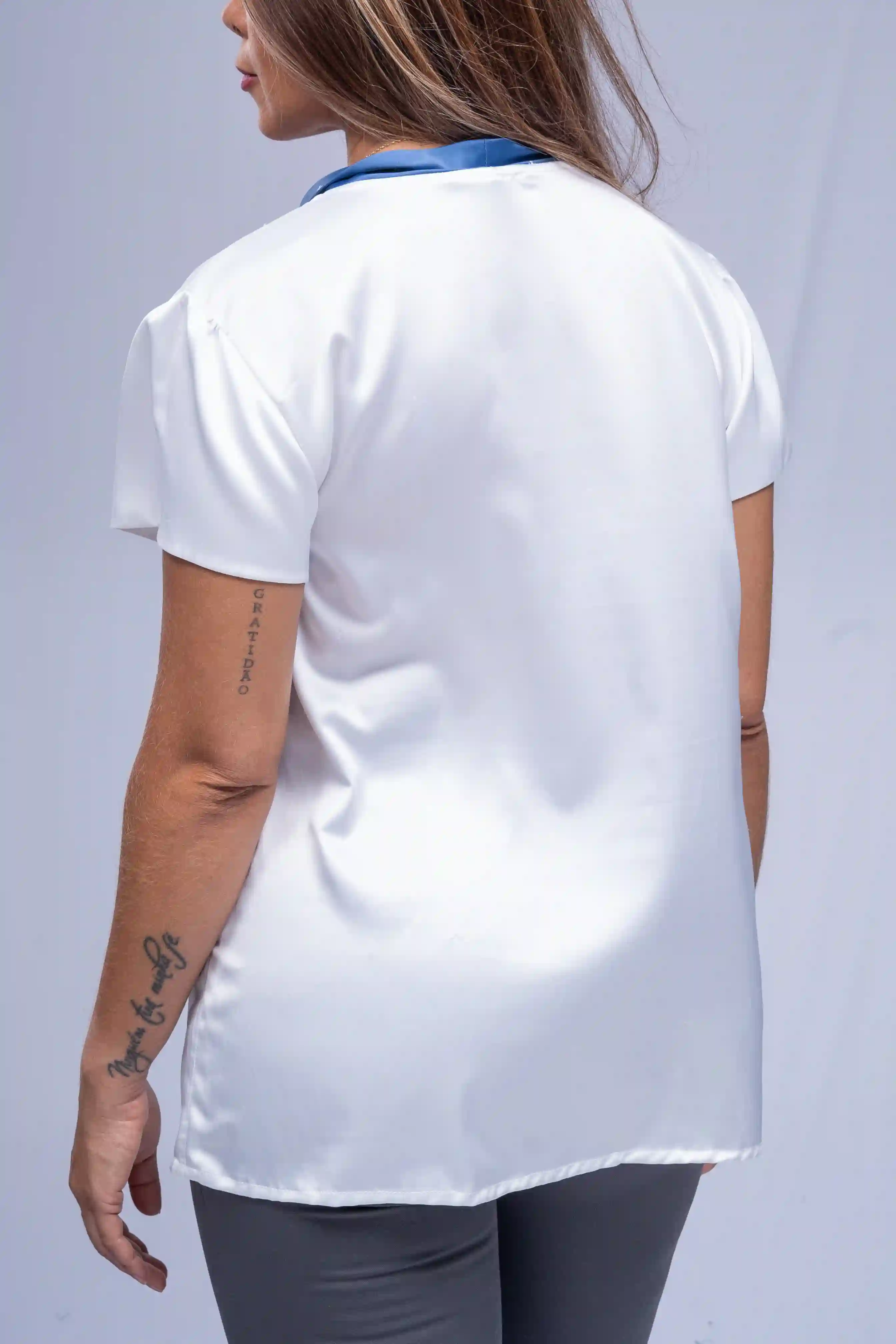 Blusa social com lenço em tecido gloss. Manga curta e lenço personalizado. Sua logomarca inclusa. Faça seu orçamento.