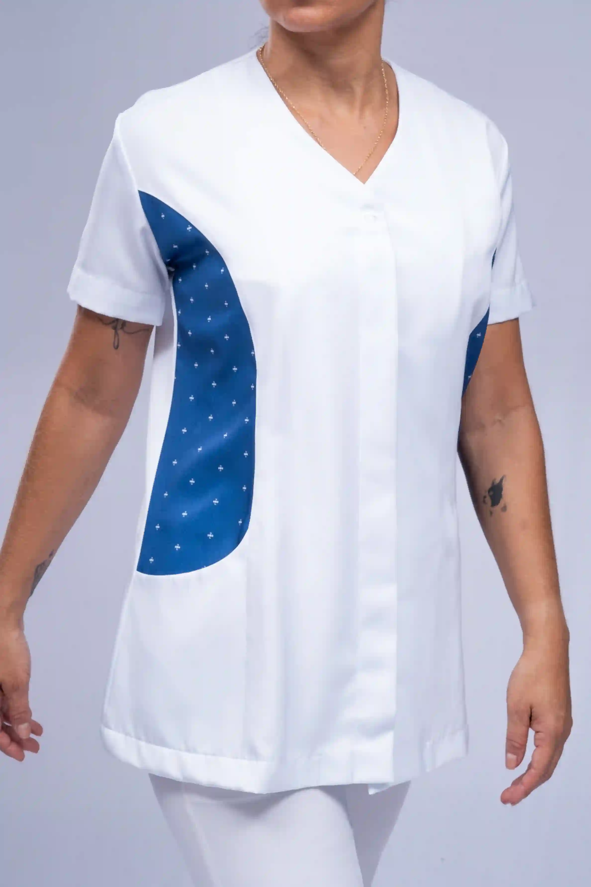 Scrub social com abertura frente com botões e lapela coberta. Manga curta. Bolso interno com detalhes laterais em sublimação. Sua logomarca inclusa. Faça seu orçamento.