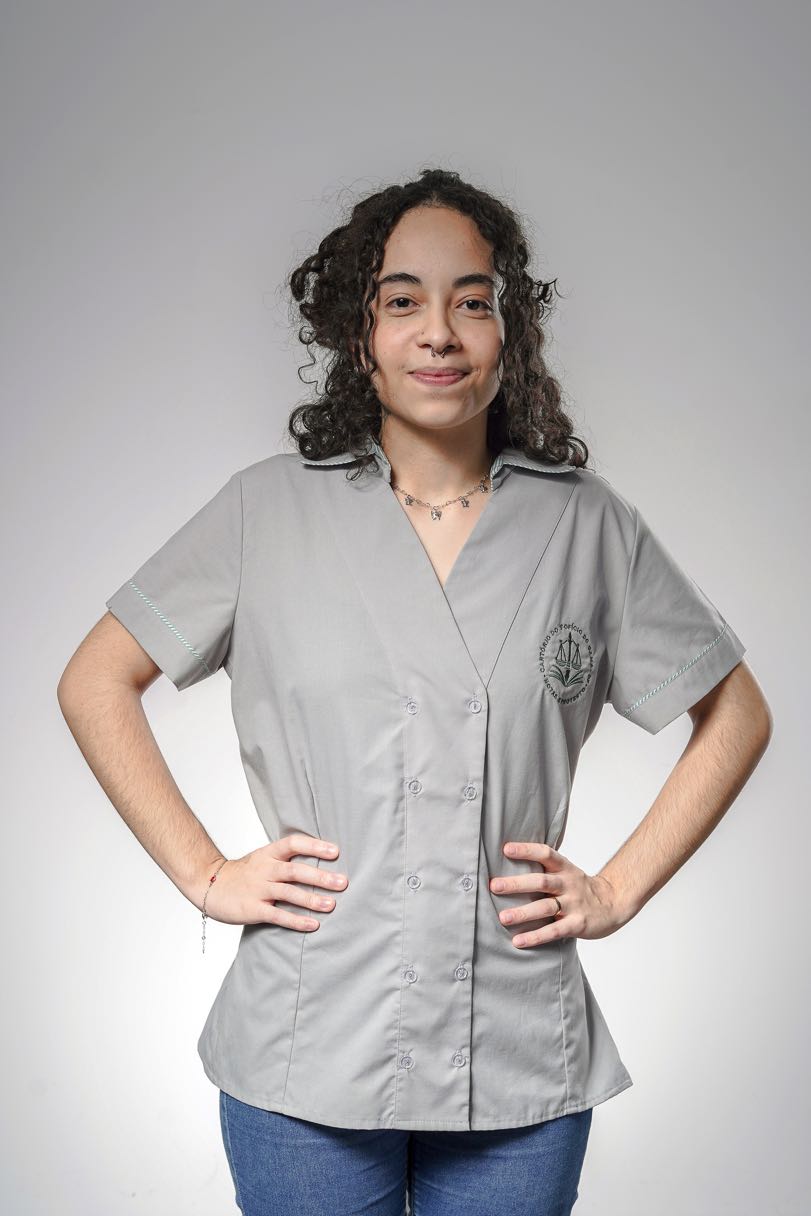 Camisete Feminina Manga curta em tecido grafil profit misto. Acabamento frente em botões duplo. Gola com lenço embutido. Sua logomarca inclusa. Faça seu orçamento.