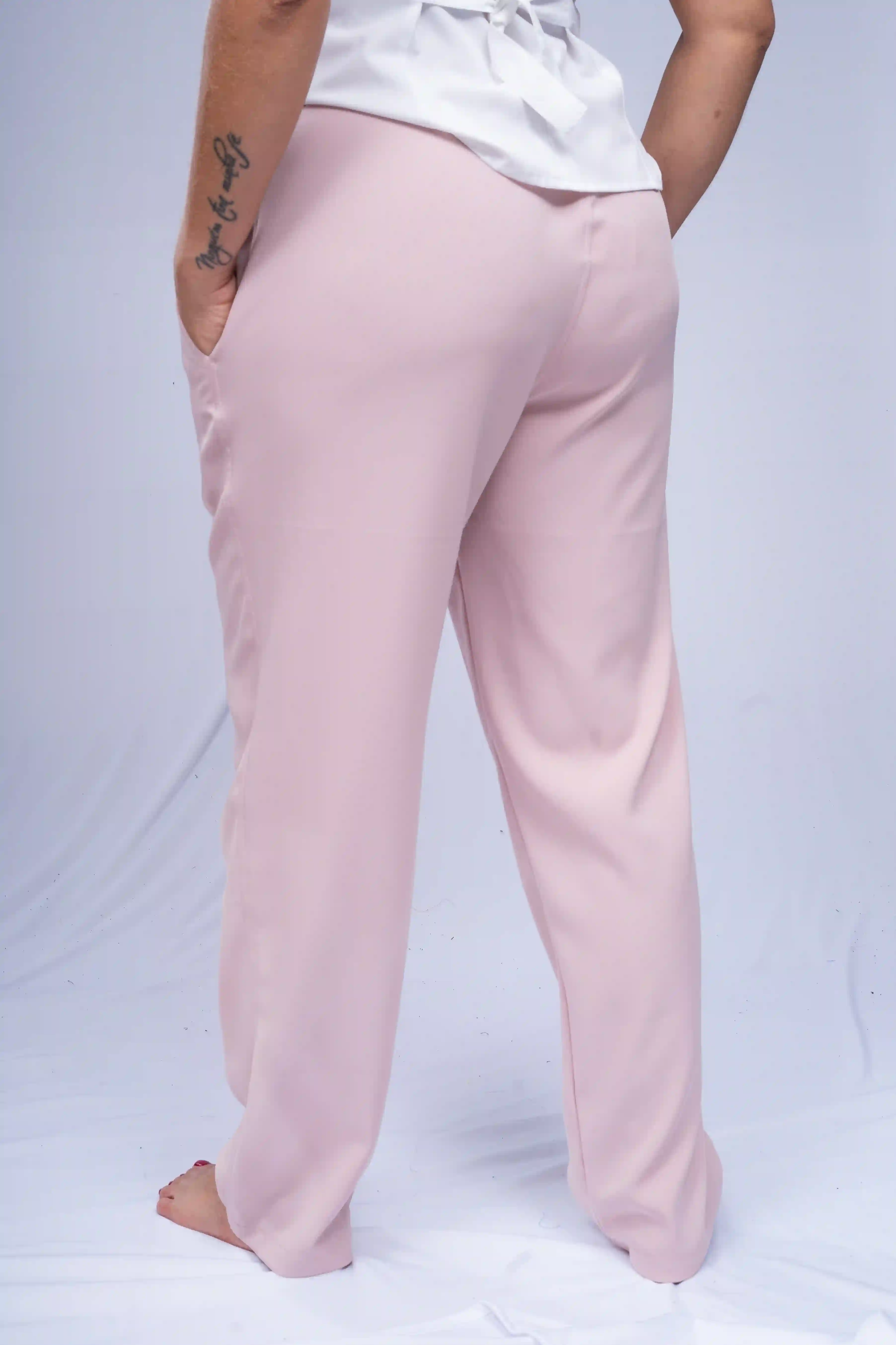 Calça scrub em tecido two way poliéster com elastano. Cos alto em elástico largo com cordinha falsa. Bolso faca frente.