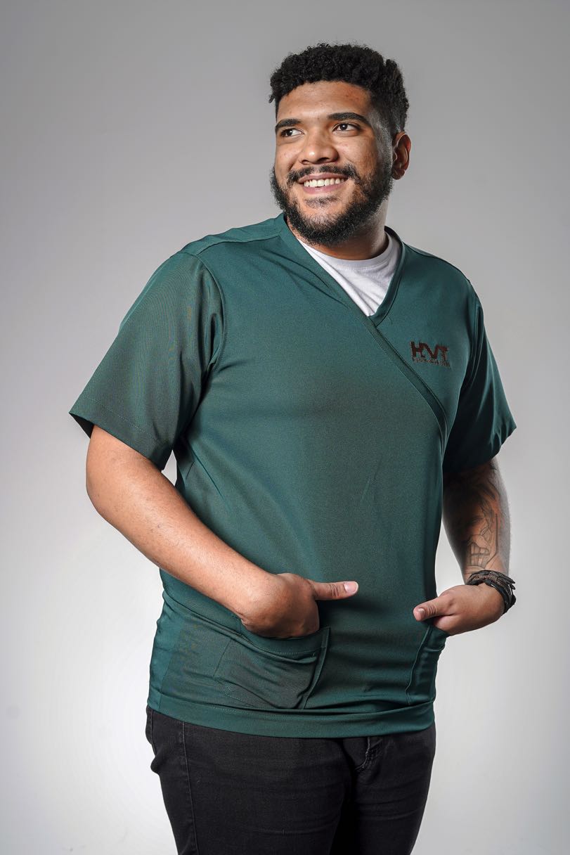 Scrub em tecido twoway poliéster com elastano. Gola V e detalhe frente. Dois bolsos frente. Sua logomarca inclusa. Faça seu orçamento.