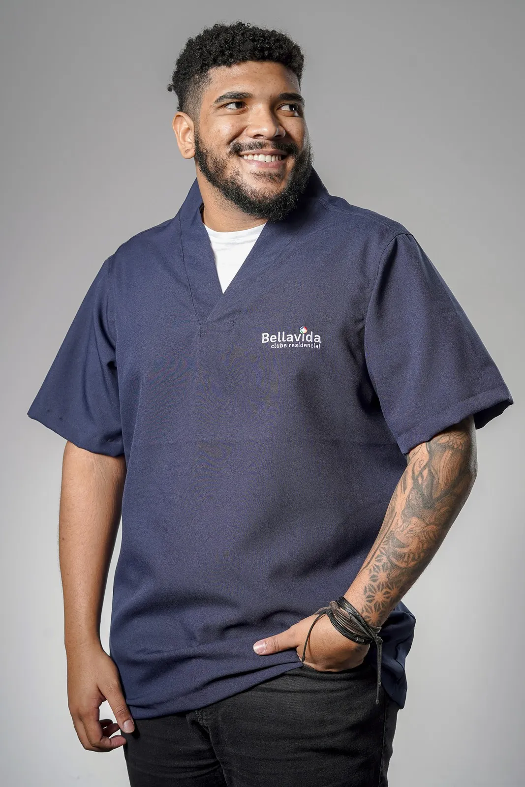Jaleco Básico confeccionado em tecido poliester com Gola decote em V e manga curta. Sua logomarca personalizada, faça seu orçamento